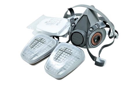 Åndedrætsværnssæt klar til brug med 3M genanvendelig halvmaske 6200M og 3M filtre med A2P3 R-beskyttelse.