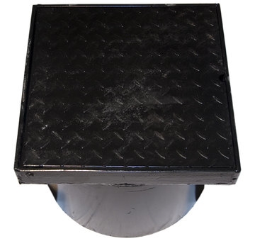 Karm med hængslet dørkplade dæksel. I smedejern. Børnesikret. 2½ tons belastning.