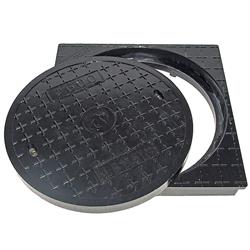 Glasfiber dæksel og karm er fremstillet i glasfiberarmeret polyester med indlagte stålarmeringer som derfor er sporbart ved evt. tildækning. Den firkantede karm sikrer at det er let at lægge belægningsten ind til dækslet.
