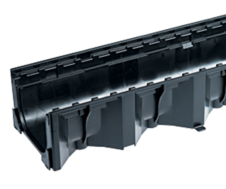 ACO HEXALINE linjedræn, afløbsrende uden rist og udløb. Kan kombineres med et vælg af forskellige risteløsninger i belasningsklasse A15 - 1,5 tons.