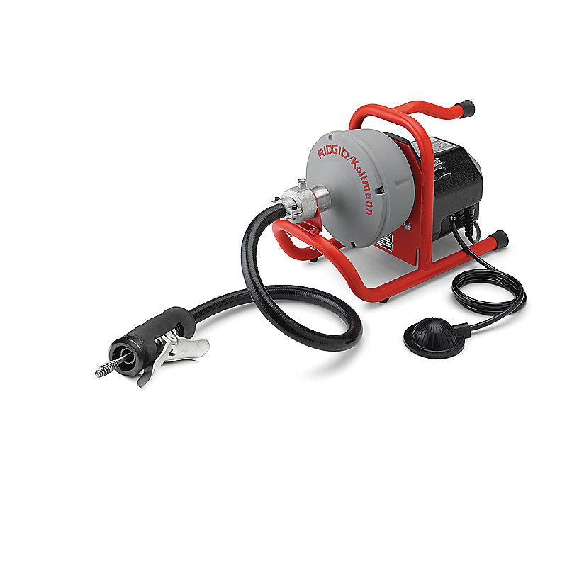Renser afløb fra 30 mm til 50 mm på op til 10,7 m. Ideel til éhåndsbetjening, hvor pladsen er trang. Føringsslangen forhindrer, at den roterende spiral beskadiger håndvaske, fliser mv. Typiske anvendelsesområde: håndvaske, badekar, bruseafløb, urinaler, og hvor pladsen er trang. 230 V, automatisk fremføring, pneumatisk fodkontakt. Leveres med C-13 spiral 8 mm x 10,7 m Vægt 35 kg.