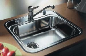 Stor køkkenvask af rustfrit stål med praktisk bagpanel. 3,5" afløb med kurveventil og excenter. Incl. sæbedispenser.