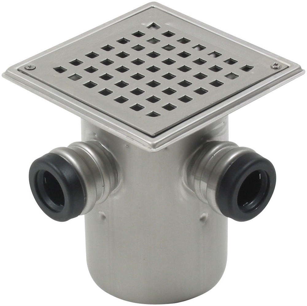 BLÜCHER Domestic-150 afløb for beton- og klinkegulve, med sideindløb og lodret Ø110mm udløb, uden membranflange