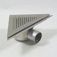 BLÜCHER WaterLine Trekantafløb - justerbar afløb for hjørnemontering i beton- og klinkegulve, med sideindløb og vandret Ø75mm udløb, med membranflange.