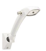 Håndbruser med indbygget stophane, bøjning og tap G 1/2". Vægflange med kugleled.