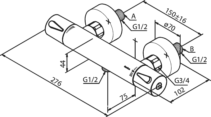 Flot Damixa Silhouet brusetermostat i Matsort med 1/2" tilslutning.
