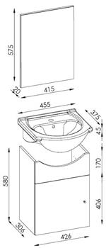 Dansani Nassau møbelpakke 45 cm Inkl. vask skab og spejl
