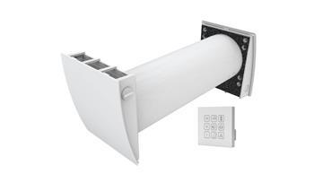 Et-rums varmegenvindingssystem med en høj varmegenvindingsgrad. Består af en murgennemføring med keramisk veksler, udvendig storm- skærm, indvendig diskret front, lavenergi tovejs-ventilator samt et eksternt betjeningspanel.