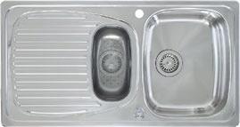 1½ kumme med afløbsbakke samt løft-op ventil. Leveres med plast skylleskål. Vendbar. Leveres med hanehul.