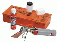 Express loddekolbe til gasdåse med metalkasse, 100 ml. flaske til flus, 150 g. salmiaksten, en ekstra gasdåse 444 og ekstra gasdyse. Slangeløs gasloddekolbe til små reparationer.
