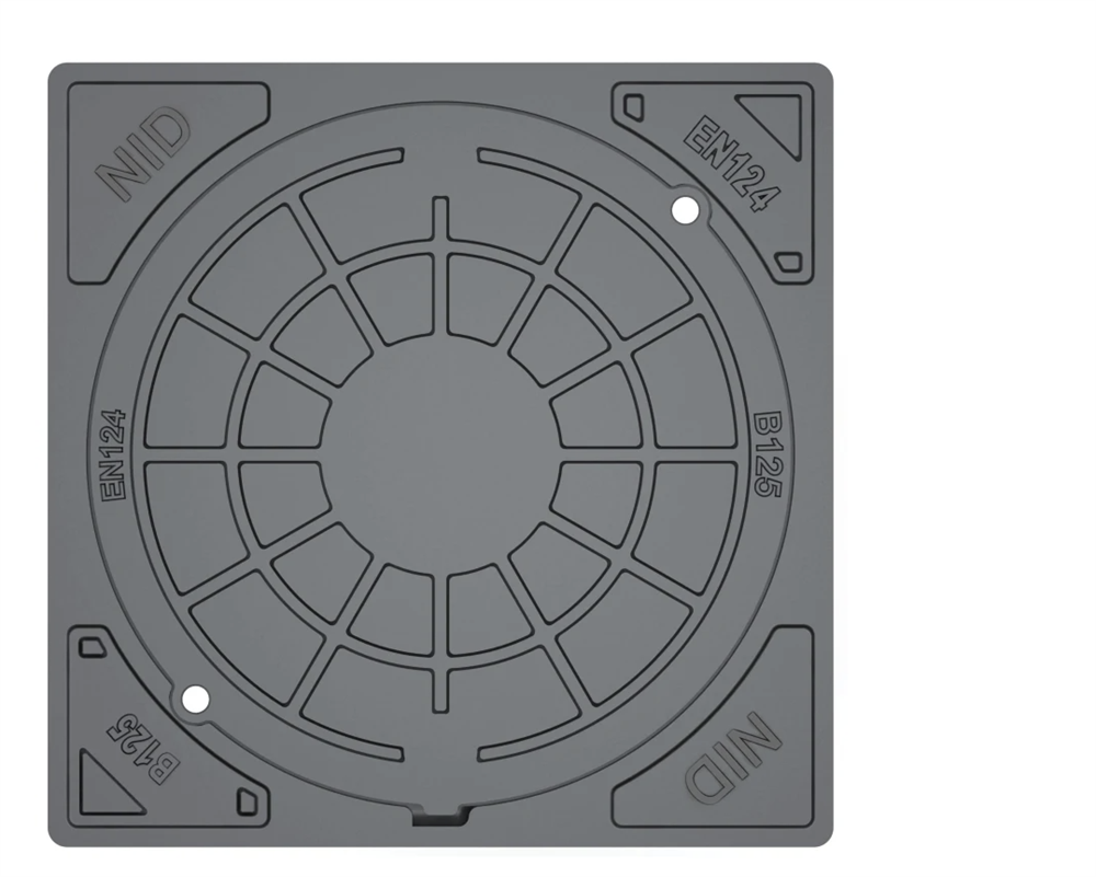 Firkantet kloakdæksel NID 315 mm karm/dæksel med skruer.fast, 12,5 tons i komposit