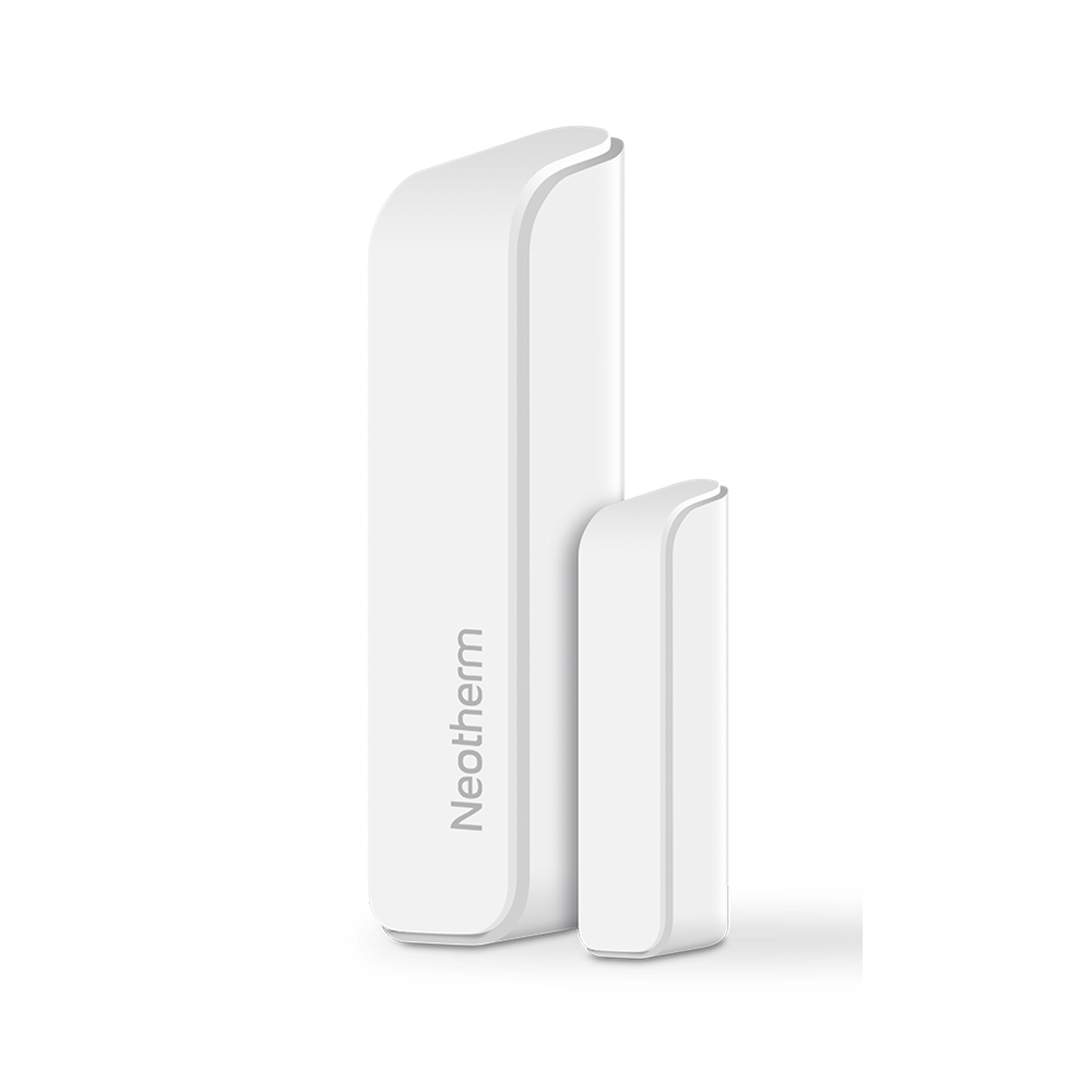 Futura Z Vinduessensoren er et lille, trådløst udstyr, der registrerer om en dør eller et vindue er  åbent eller lukket og rapporterer dette til Neotherm Smart Home-appen.