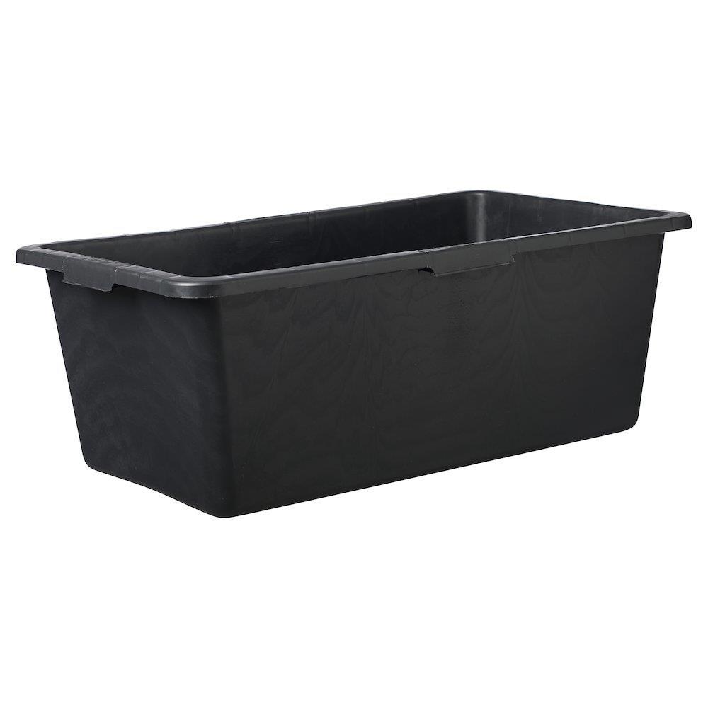 irkantet murerbalje, kraftig model i syrefast plast med forstærket bund og kant.