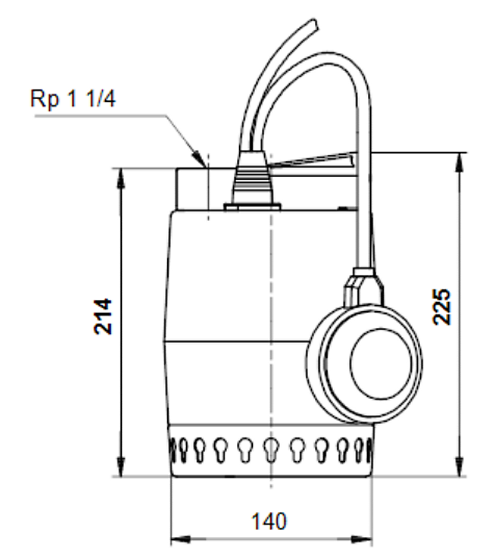 Pumpen har indløbssi og løftebøjle og leveres med et 10 m netkabel og svømmerafbryder for automatisk start/stop.