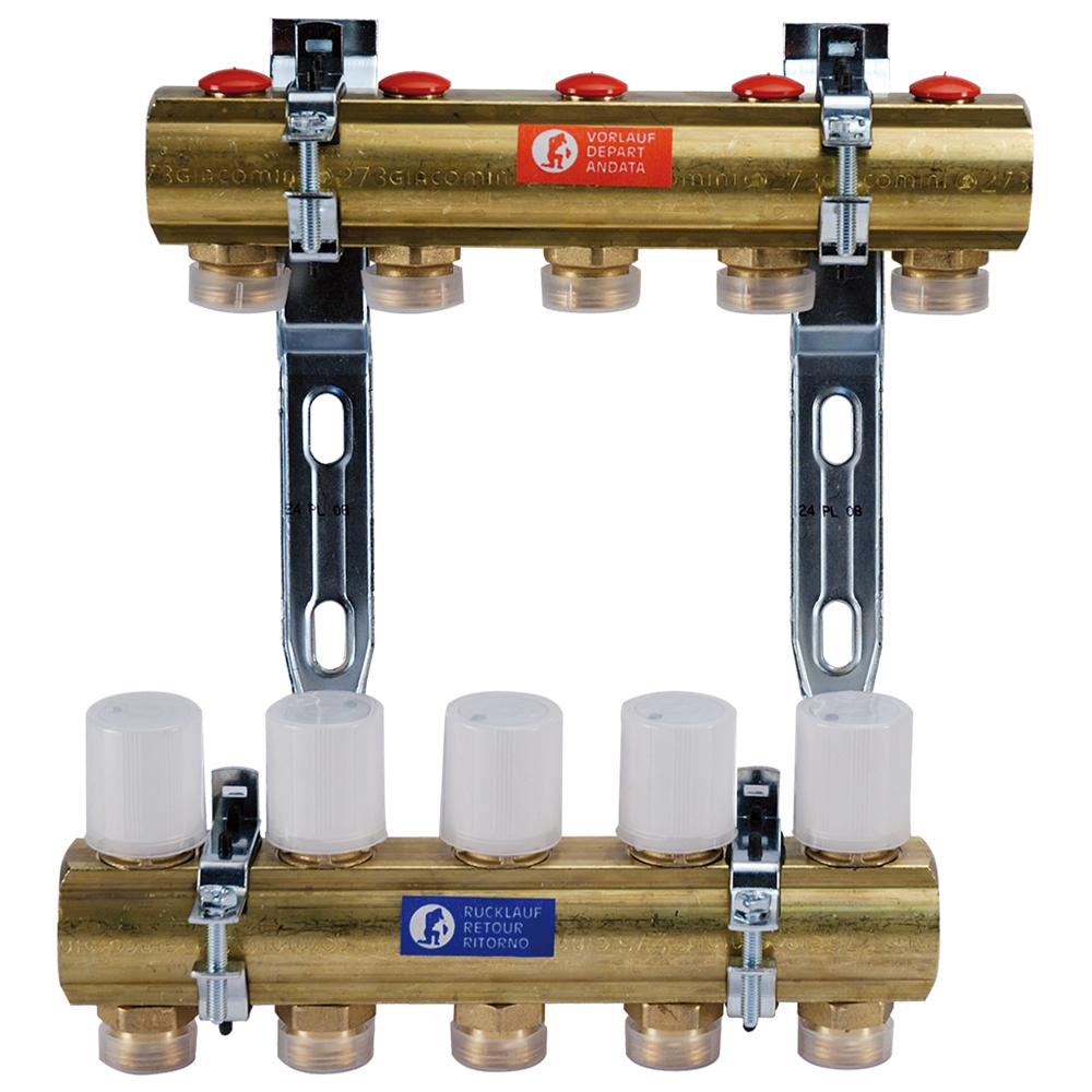 Fordelerrøret leveres samlet til det bestilte antal kredse (2-12 gulvkredse) og har påmonteret vægbeslag.