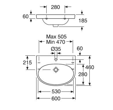 GUSTAVSBERG Nautic Håndvask 600 x 460 mm 600X460MM
