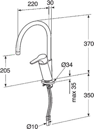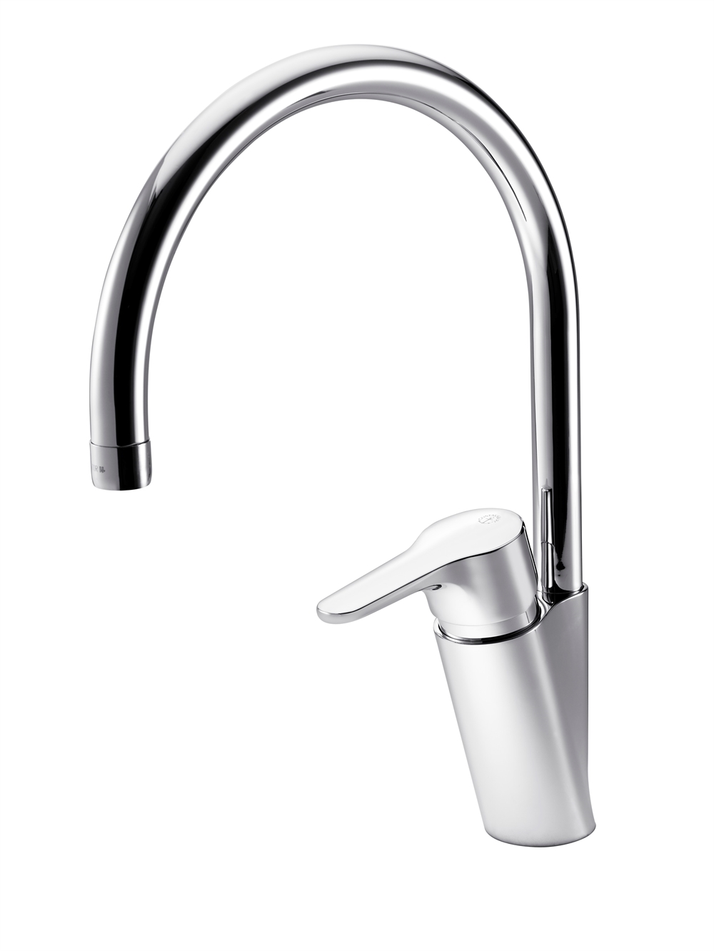 Armatur til køkkenvask Nautic 204056 med højt udløb. Inden monteringen skal rørene skylles rene hen til armaturet. Armaturet tilsluttes med koldtvandsrøret til højre og varmtvandsrøret til venstre. Vandtryk: maks. 1000 kPa. Varmtvandstemperatur: maks. 80 °C. Ved mønstret bordplade anbefales tætningsmasse mellem armatur og bord.