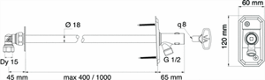 Udendørsarmatur med typegodkendt kontraventil til rumtype 1. Selvtømmende frostsikker uanset om slangen er tilsluttet. Maks. vægtykkelse 400 mm.