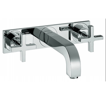 • Hans Grohe nr 39314000 • Axor Citterio • 3-huls Håndvaskbatteri • Til vægmontering • Med krydsgreb • Inkl. Plade • 166 mm tud • Krom Se relaterede varer nedenfor: