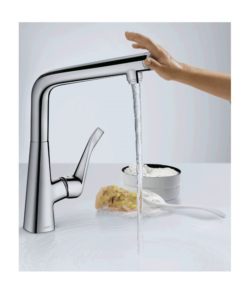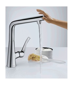 Hansgrohe Metris Select køkkenarmatur med select knap i krom