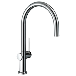 - HansGrohe Talis-køkkenarmaturer med C-tud har en organisk form, som giver et harmonisk udtryk til køkkenet. C-vandhanerne fås i både mat sort og i krom med et stål-look.