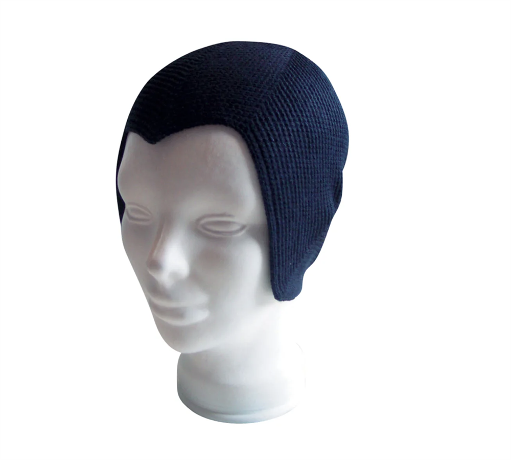 Strikket hjelmhue til brug under sikkerhedshjelm.