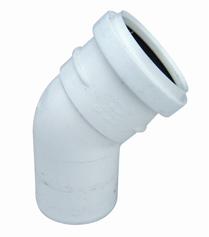 HTP afløbsbøjning, 45gr. Ø50, hvid