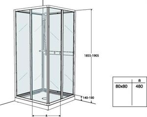 Ifö Next brusekabine NKH-L 88 Vs 80 x 80 cm Lav model Højde fra 185,5 - 190,5 cm