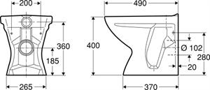 Toilet til gulvmontering og indbygningscisterne. Sparer plads, fordi toilettet kan stå helt ind til væggen. Rengøringsvenligt. Siddehøjde 40 cm.