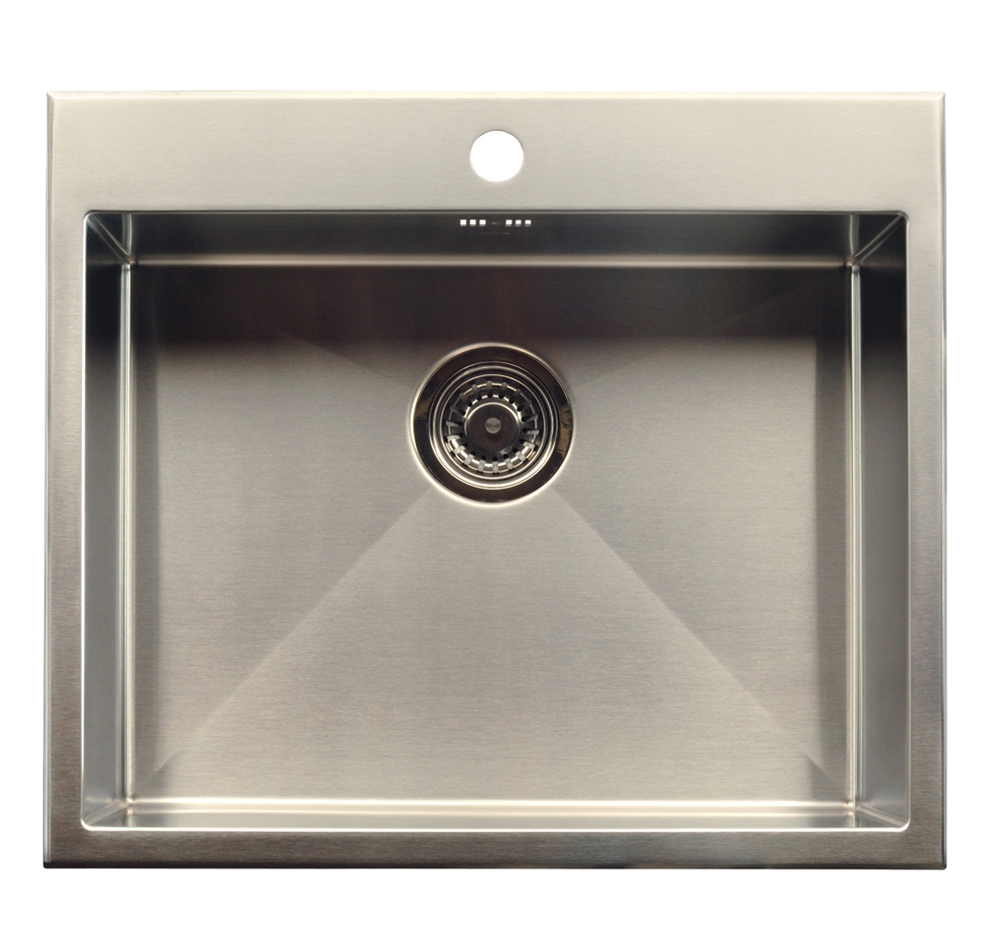 Firkantet vask med hanehul,strainer og vandlås til nedfældning.