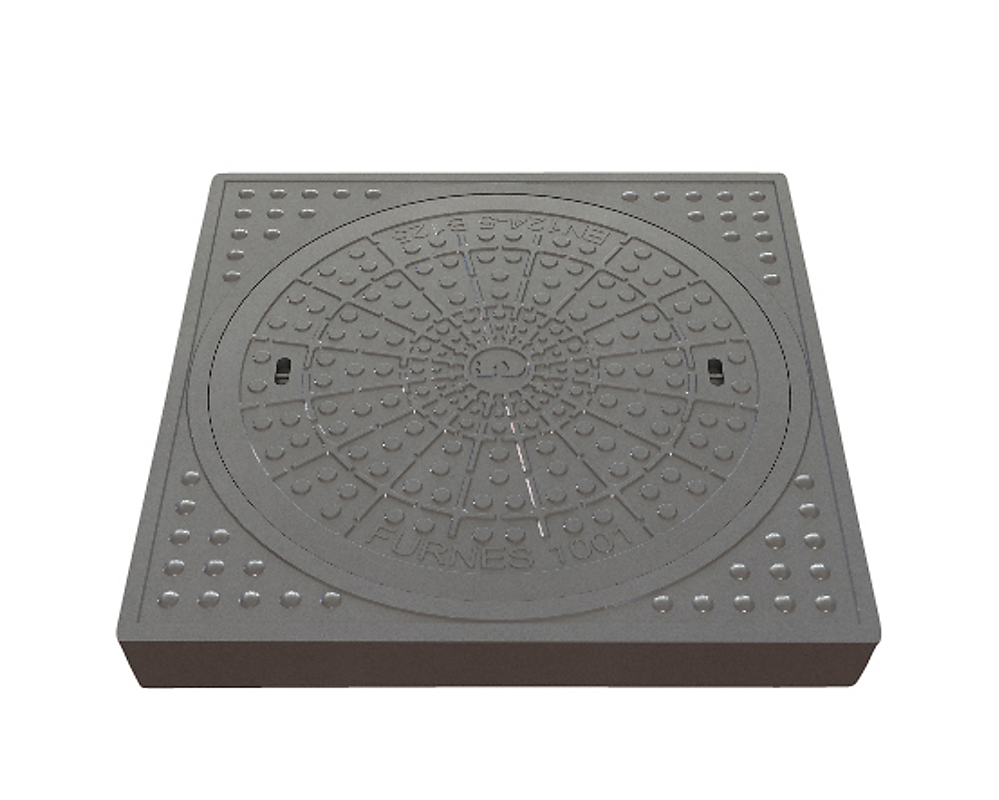 Kloakdæksel i grå med Karm I komposit 600 mm firkantet med dæksel City