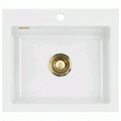 • Lavabo Mera 57 keramik køkkenvask - Blank hvid m/PVD messing afløb