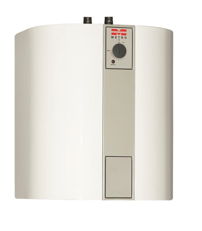 Trykfast konstruktion - 10 Bar til montering på væg med rør ned eller på gulv under bord med rør op. Vandvarmerne kan monteres som trykbeholder med sikkerhedsventil til flere tappesteder med normalt tryk blandingsbatterier, eller som trykløs uden sikkerhedsventil til et tappested med METRO's overløbs blandingsbatteri. Anvendelse: Vandvarmerne er specielt beregnet til opvarmning af brugsvand til køkken, håndvask og mindre brusebade. Brugsvandet opvarmes af et elvarmelegeme, og temperaturen styres trinløst af en indbygget termostat fra 10 til ca 65 °C. EL-tilslutning: Vandvarmerne leveres som standard med et universal rørvarmelegeme på 3,6kW/400 volt, og kan uden ændringer tilsluttes 230 volt. Effekten bliver da 1,2 kW. Kan også leveres med 2kW/230 volt. (dog ikke type 908). Inkl. aggregat.