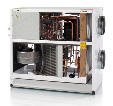 via en varmepumpe, der udvinder energi direkte fra udsugningsluften.