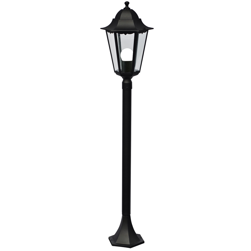Den elegante havelampe er 100 cm høj og fremstillet i sortlakeret aluminium.