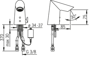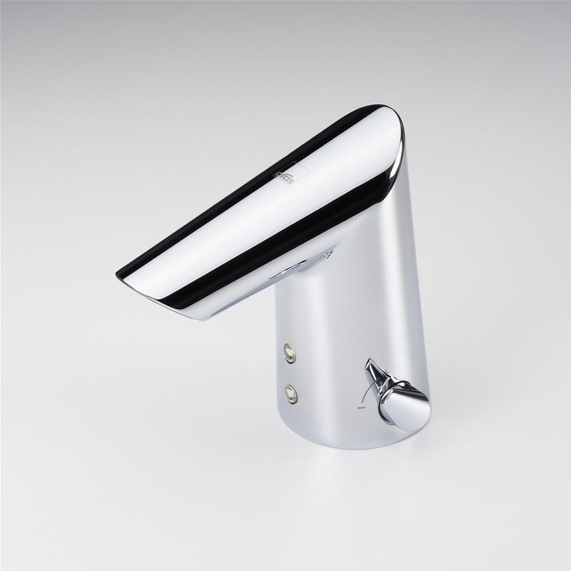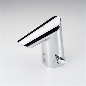 Oras Vienda Håndvaskarmatur Berøringsfri håndvaskarmatur med temperaturregulering. Batteridrevet 6 V. Grundet den lave totalhøjde på armaturet, kan det installeres på selv de mindste steder. Armaturet er udstyret med smudsfiltre og kontraventiler. Der er ikke behov for justering ved installationen, takket være en avanceret Autofokus sensor. Den impulsstyrede magnetventil giver lang levetid til batteriet. Vandmængdebegrænser (5 l/min) giver et lavt vandforbrug.F = fleksible tilslutningsslanger