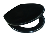 Toiletsæde af gennemfarvet hærdet plast med rustfri stålbeslag. International formgivning