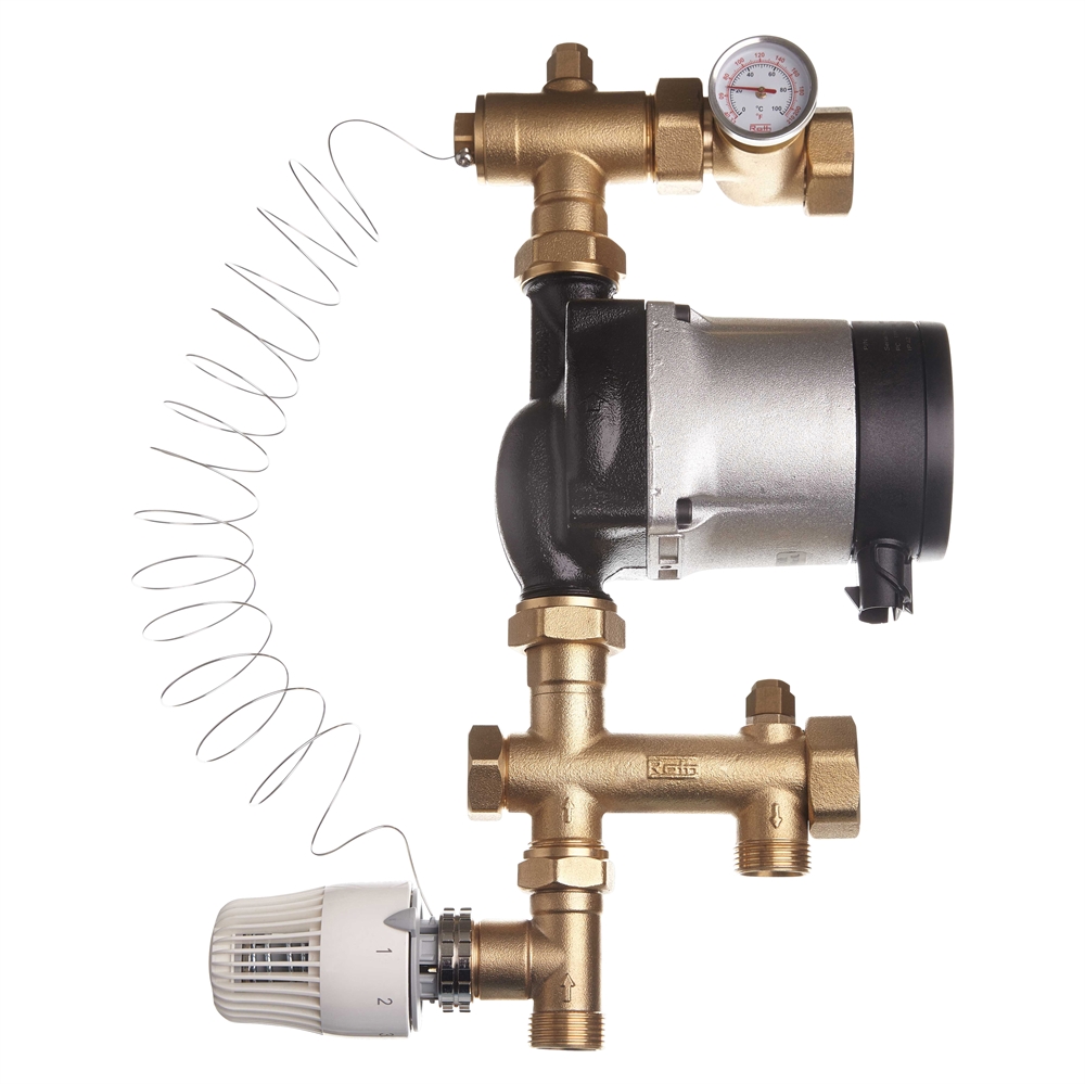 Roth gulvvarmeshunt med 2-vejs ventil og termostatisk ventil samt Alpha2 L 15-60 pumpe