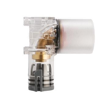 Koblingsdåsen er produceret i gennemsigtig, helstøbt plast med præmonteret rødgodsvinkel og trykprøvningsprop.