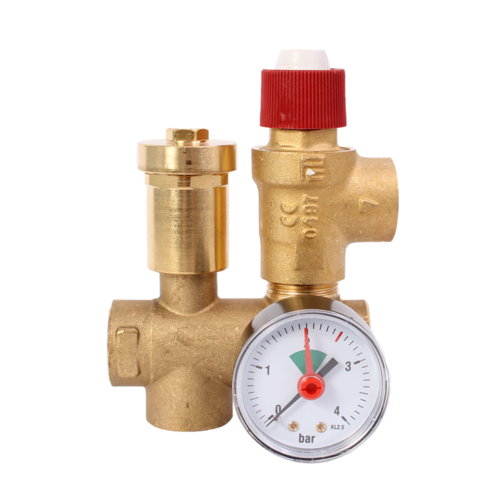 Samlesæt til trykekspansionsbeholdere, komplet med 3/4" samlestykke, automatisk luftudlader, manometer og 1 sikkerhedsventil.