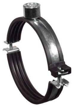 todelt universalrørbøjle med lyddæmpende gummiindlæg. tilslutningsgevind, indvendig m8, m10, 1/2' samt udvendig 3/4', når omløberen afmonteres.