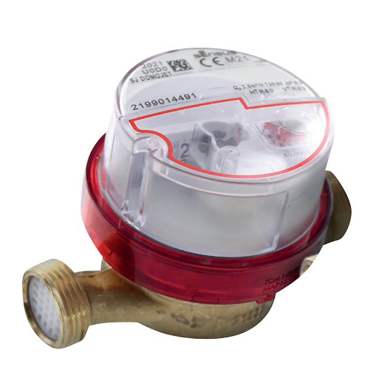 Sensus DomoJet Bimåler Q3=4 (QN2,5), DN20, L 130 mm. 1''RG, Til varmt vand 90°. R80