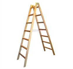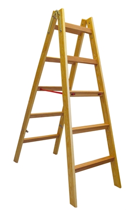 Fyrretræ (vanger), Bøgetræ (trin), Galvaniseret stål (beslag),