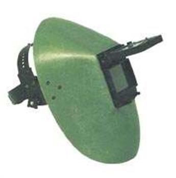 Hovedsvejsehjelm fremstillet i glasfiber. Med vipperude.
