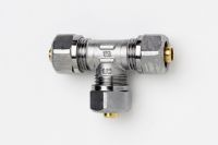 Denne kan bruges på gulvvarme rør med diameter på 20 mm, dette tee stykke er med støttebøsning, for at sikre en tæt samling.