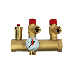 NeoTherm samlesæt leveres komplet med 3/4" samlestykke, automatisk luftudlader, manometer og 1 sikkerhedsventil.