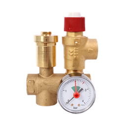 Samlesæt til trykekspansionsbeholdere komplet med 11/4” samlestykke, automatisk luftudlader, manometer og 2 sikkerhedsventiler.