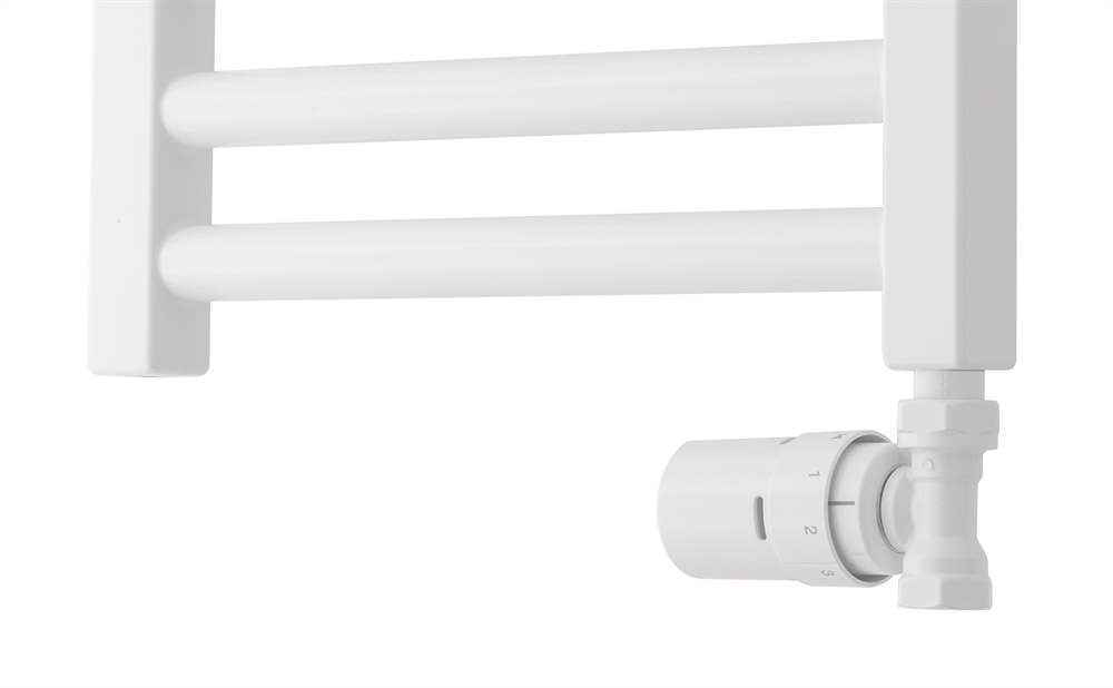 Hvis man skal bruge en ligeløbsventil, er dette en god løsning. Ventilen er i hvid udførelse og med en returtermostat, der sikrer en jævn varmefordeling