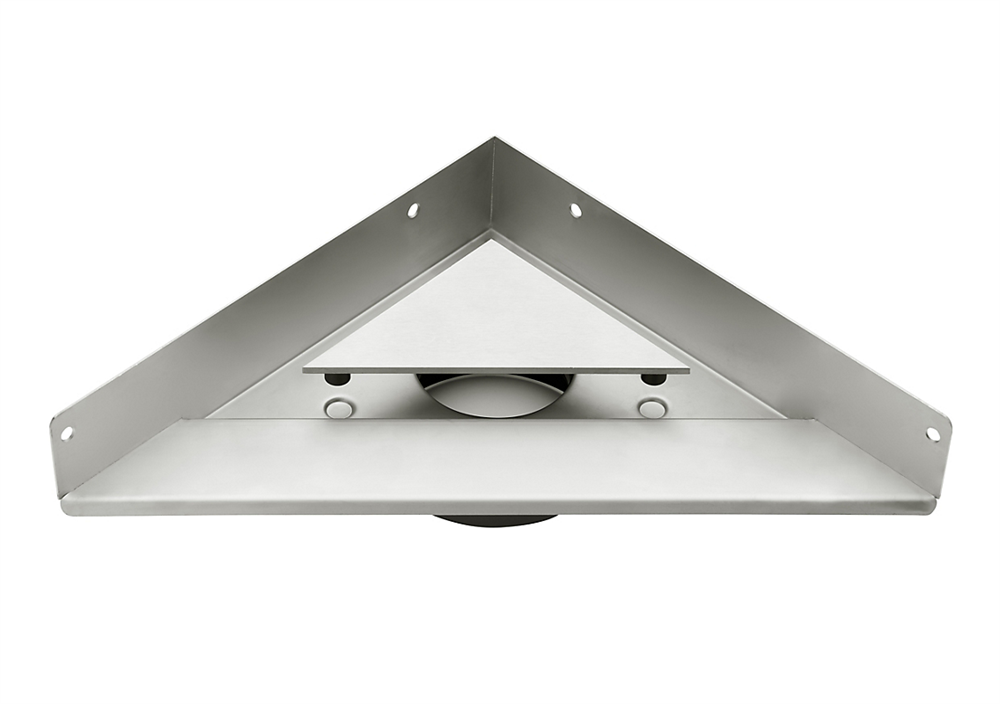 Afløb med to vægflanger og én gulvflange. Inkl. base, hvorpå en flise påklæbes. Custom basen med flisen placeres i afløbet og er herefter i niveau med flisegulvet.