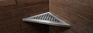 Sæbehylden er til hjørnemontering og er til indmuring/montering i hjørnet af brusenichen.